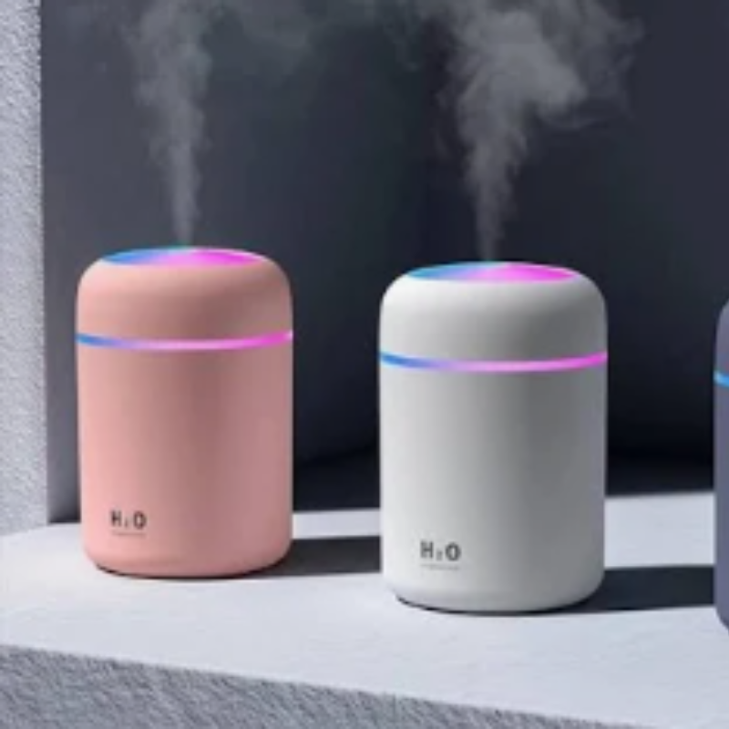 Ultrasonic diffuser, BPA-free water tank, essential oils (lavender, peppermint, eucalyptus).